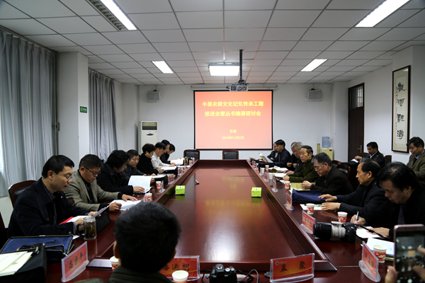 2016年11月2日,中原农耕文化记忆传承工程推进会暨丛书编著研讨会开幕式在学校第一会议室举行,院长赵继红、党委副书记马超、副院长郑直出席了会议,河南省文化厅非遗中心党委书记候旭、河南省文化局博物馆处处长康国义、河南出版传媒集团中原农民出版社副总编辑吴丹青等莅临会议指导,我校党委宣传部、院长办公室、科技处、图书馆、马克思主义学院、中原农耕文化博物馆等部门的主要领导参加了会议。副院长郑直主持会议。