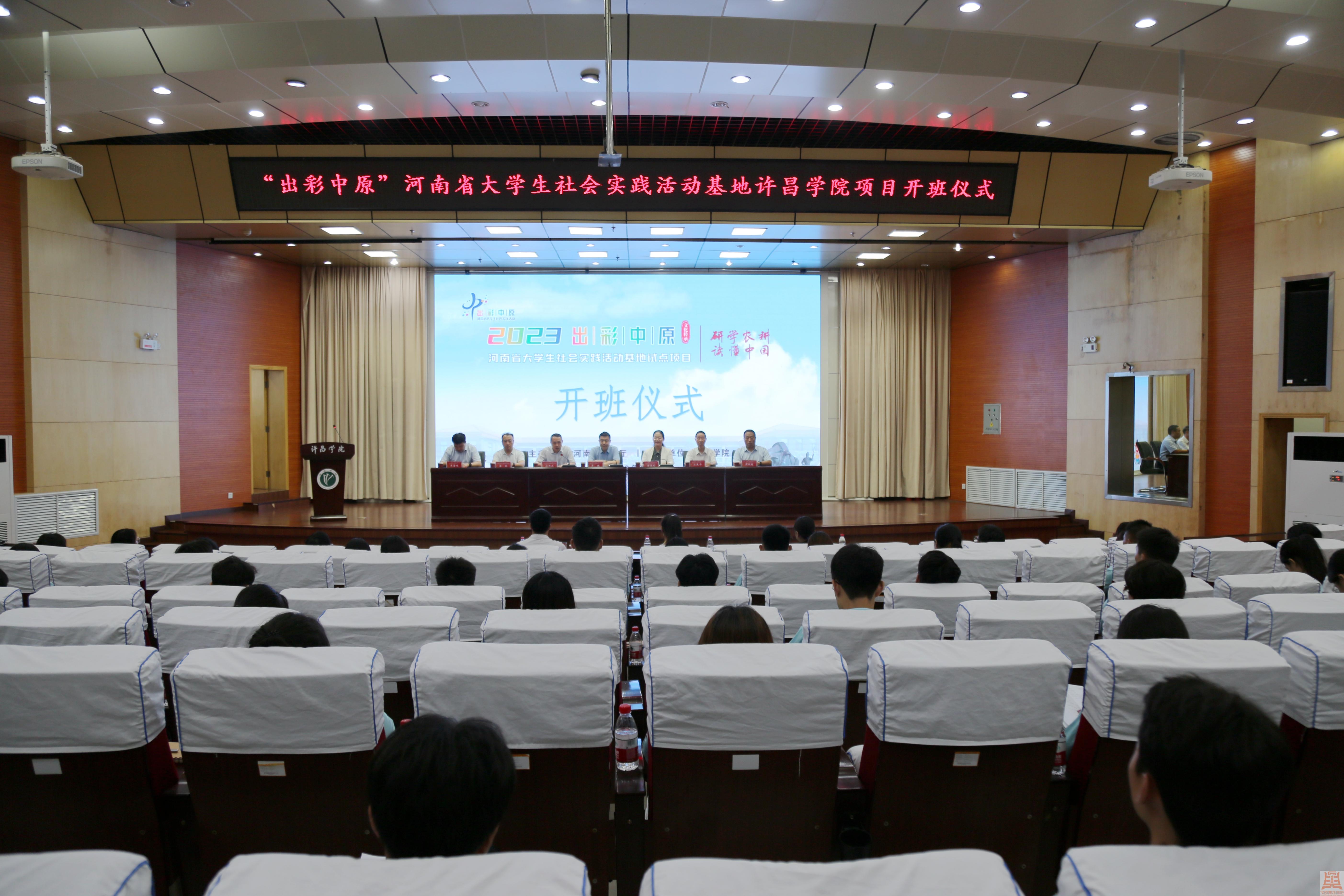 8月18日,2023年“出彩中原”河南省大学生社会实践活动基地“研学农耕·读懂中国”大学生文化传承类社会实践项目开班仪式在许昌学院图书馆二楼学术报告厅举行。省教育厅学生处处长李班,许昌学院副院长潘春彩、杜根远,许昌学院原党委副书记、正厅级调研员汪庆华出席开班仪式。党委宣传部、学生处、团委、中原农耕文化博物馆等相关部门负责人,以及来自全省19所高校的50名学员参加开班仪式。开班仪式由杜根远主持。