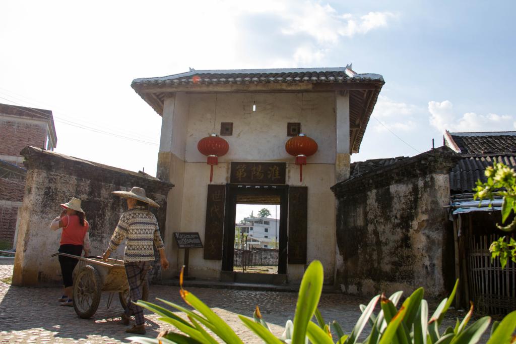 此次贺州考察中,考察团队还特意参观了贺州客家围屋建筑群。历史上,中原地区居民有着多次南迁移民的史实记载,福建客家人的土楼和广西客家人的围屋是最为典型的历史见证物。在广西壮族自治区贺州市八步区莲塘镇仁冲村,至今保存着规模最大最完整的客家围屋建筑群。贺州客家围屋围绕中轴线呈对称结构,外有圆形围墙保护,形成内方外圆的建筑形式,加之青龙、白虎、朱雀、玄武的四门设计,建筑理念中所蕴含的传统文化十分显著。客家围屋不仅具有聚族而居、安全防卫、防风抗震、冬暖夏凉的功能,而且具有丰富的文化内涵,是一本值得深读的客家文化典籍。考察团队与当地老乡进行了深入交谈,特别是看到围屋大门高挂“淮阳第”匾额,深为感动,也倍感亲切。大家都觉得不虚此行,收获颇丰。