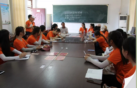 刚一进村,调研队的师生们就受到了当地村干部和县乡文化部门领导们的热烈欢迎。领导们早早地就在村委会办公室为调研队的同学们准备好了消暑饮品。师生们被村民们的淳朴和热情所感动。村支书把县文化局、乡文教站以及村委班子领导一一向调研队的师生们做了介绍,并很关切地嘱咐同学们不要拘谨,就像在课堂上一样,根据各位领导的职责,有什么问题尽管有针对性地提问。同学们个个落落大方,争先恐后,根据调研大纲,从该村的土地面积、人口数量等最基本的情况入手,涉及学生的就学、失学、留守儿童的家教缺失,当地村民的经济来源等等现实问题,一一深入了解。村干部看着充满活力热情可爱的同学们,也个个敞开心扉,毫无保留地向大家一一作答。整个上午,座谈调研活动活跃热烈,广泛深入,快中午十二点了,同学们还是热情不减饶有兴致地提问、讨论、记录。