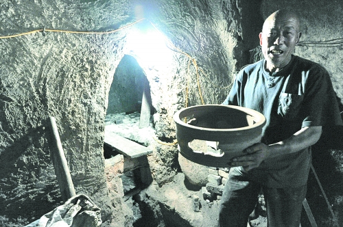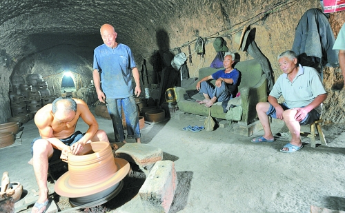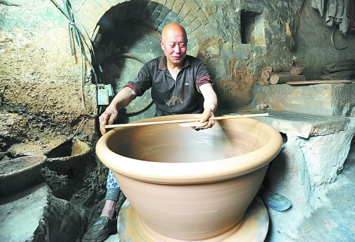 张红才家里是一个生产土陶的家庭作坊,也是南太行山脚下盆窑村仅三家的一户,生产的土陶主要是农家日常生活陶器,如坛、罐、水缸、米瓮、饭煲和一些工艺类金斗瓶等。
