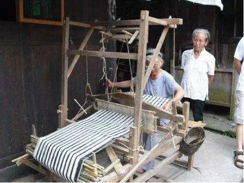 “高高山,低低山,鲫鱼游过白沙滩。”小时候,小朋友们经常出这谜语给人猜。谜语中“高高山,低低山”说的就是各种机件高低错落的土织布机。
