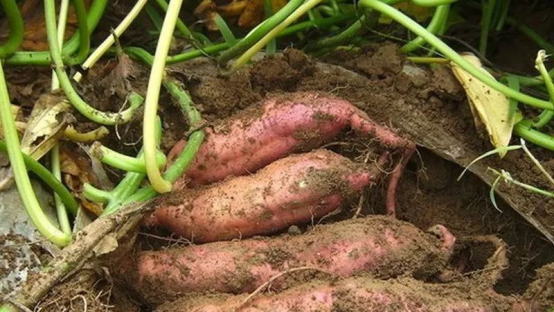 另一种是翻红薯秧。谷雨前后栽种的红薯苗儿,夏秋时节已爬出长长的红薯秧子。每下一场雨,农民们就要把红薯秧子提起来翻放在地上,防止红薯秧在泥土里扎下根来结出小红薯,分散红薯主根的营养,降低产量。红薯地沟里到处水,一踩尽是稀泥糊儿,不打赤脚做不来这活儿。